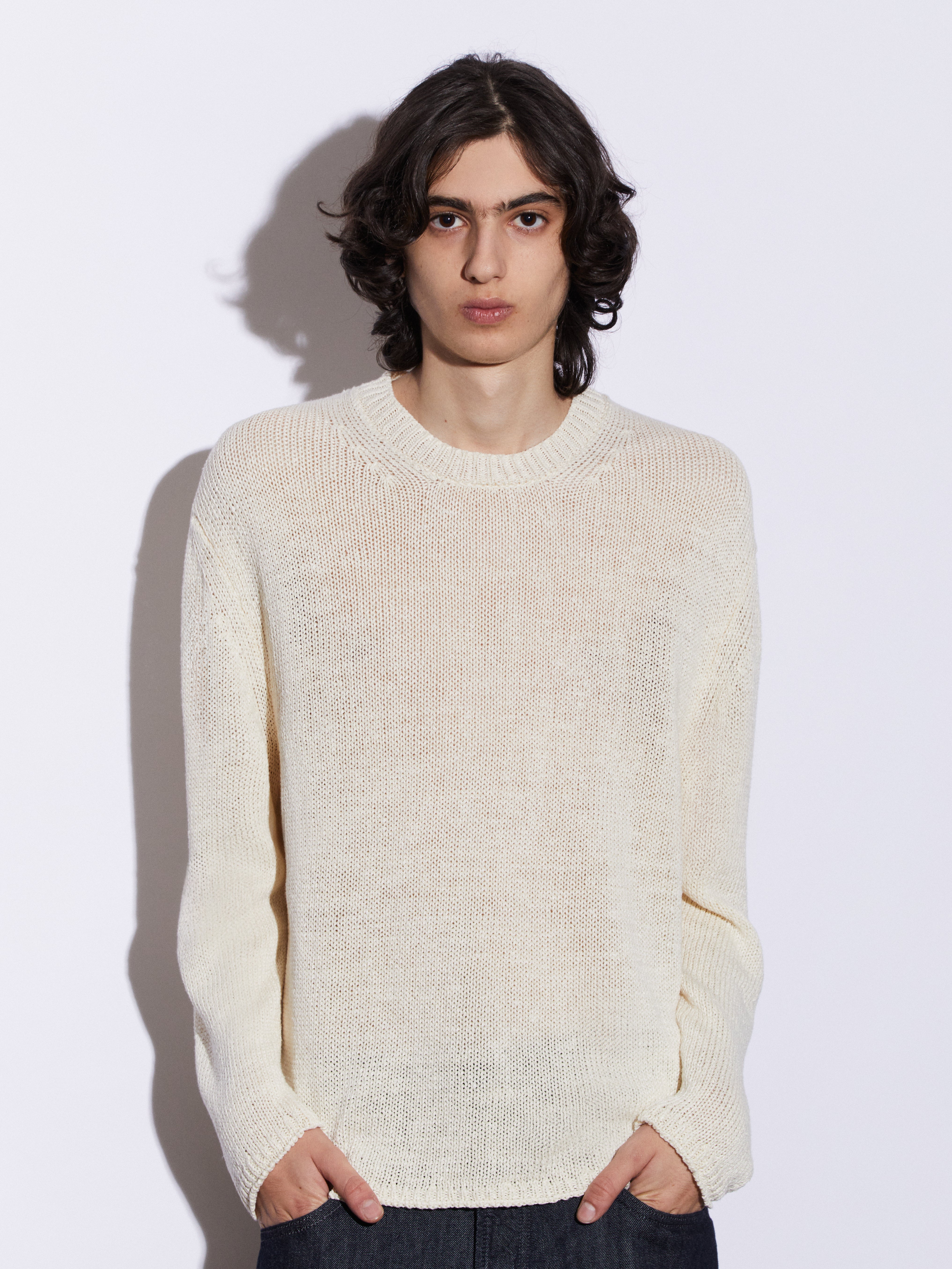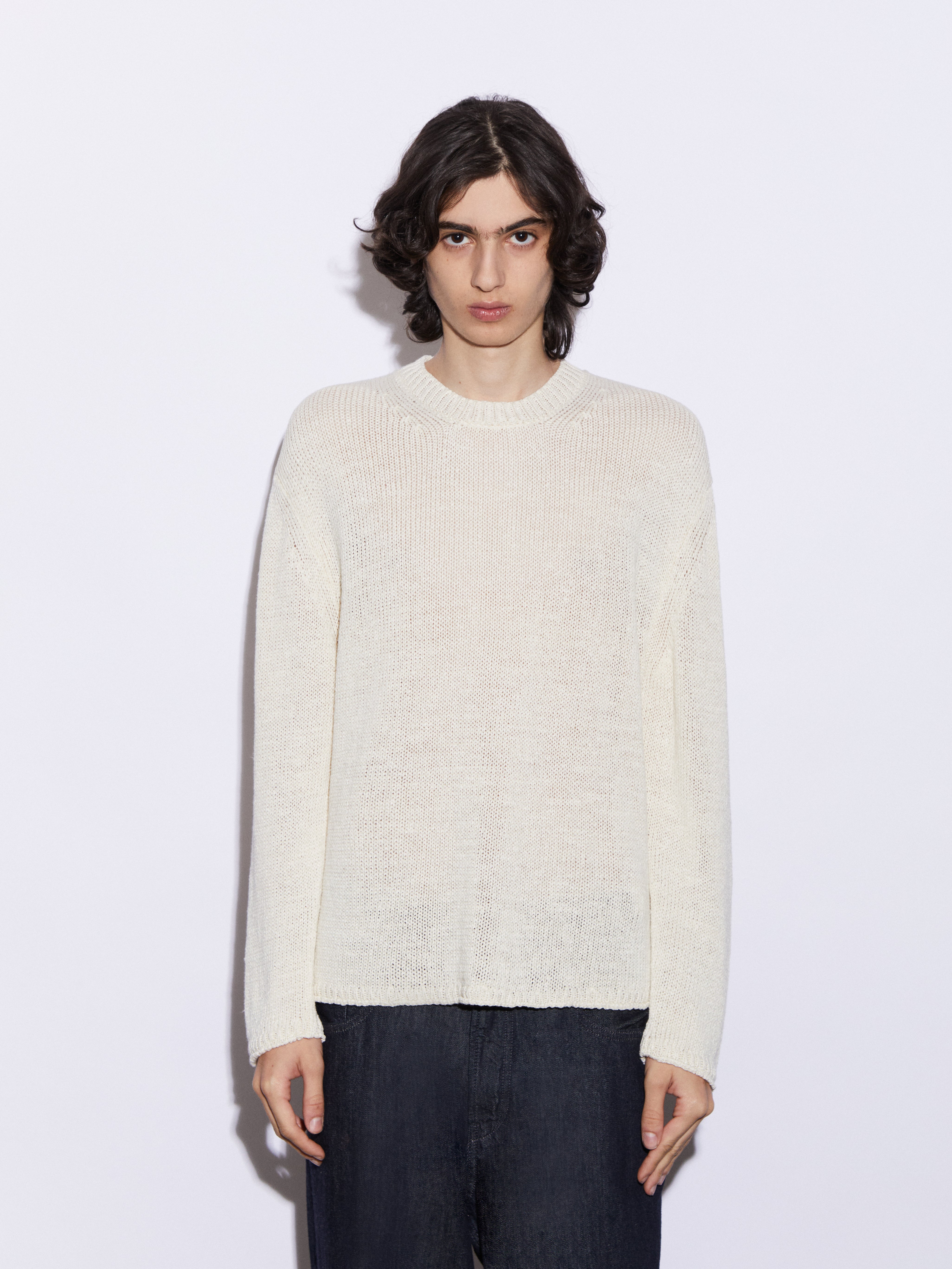 Dieser Rundhalspullover aus einem schlichten Leinen-Seiden-Gemisch wird vollständig in Italien gefertigt. Die 5-Gauge-Stricktechnik bringt das Garn optimal zur Geltung und verleiht ihm eine klare, definierte Optik. Das Leinen sorgt für Frische und Atmungsaktivität, während die Seide Weichheit und einen natürlichen Glanz beisteuert – für ein angenehm trockenes Tragegefühl. Ein schlichtes und elegantes Kleidungsstück, ideal für den Sommer und anspruchsvolle Alltagskleidung.