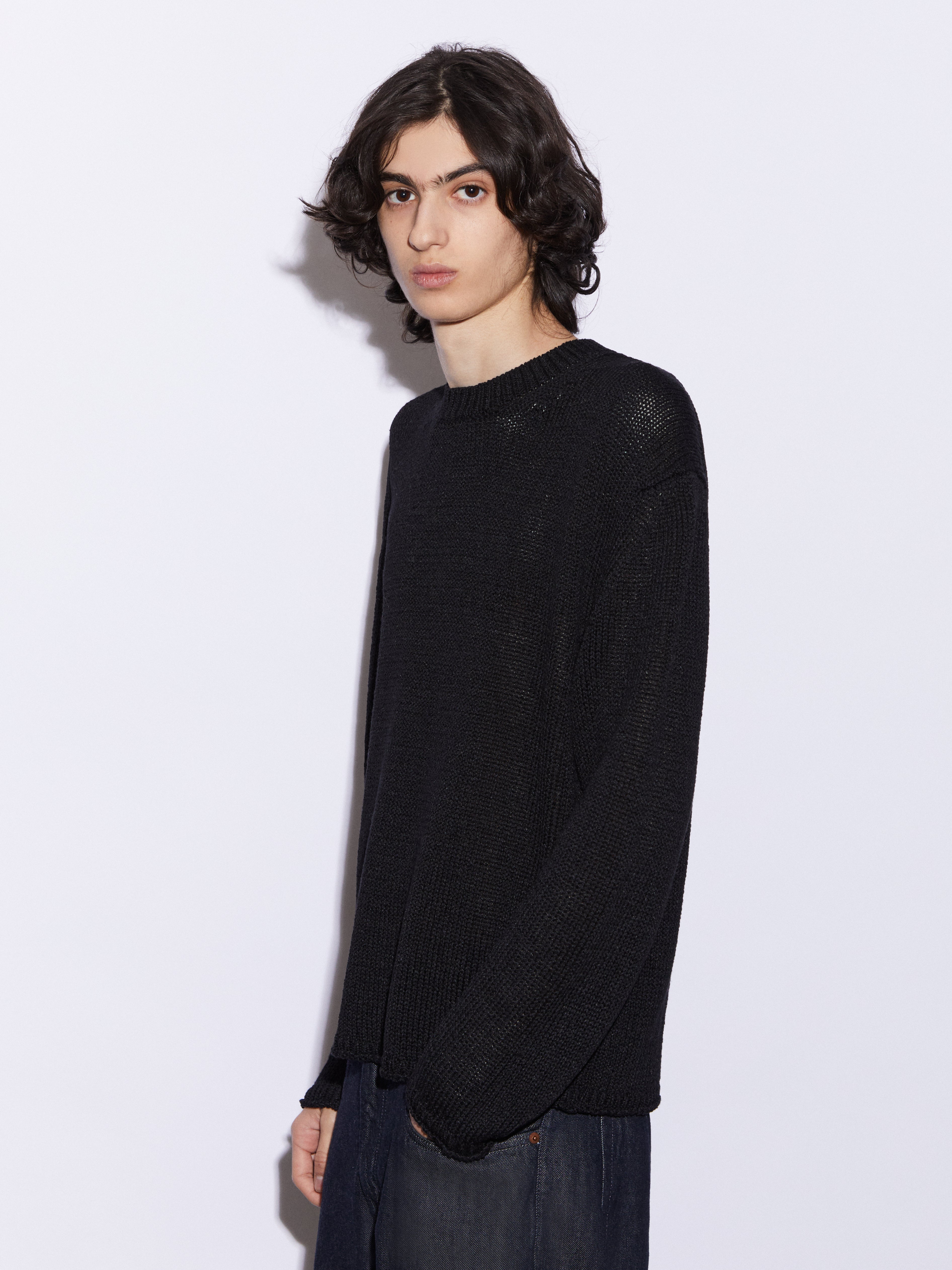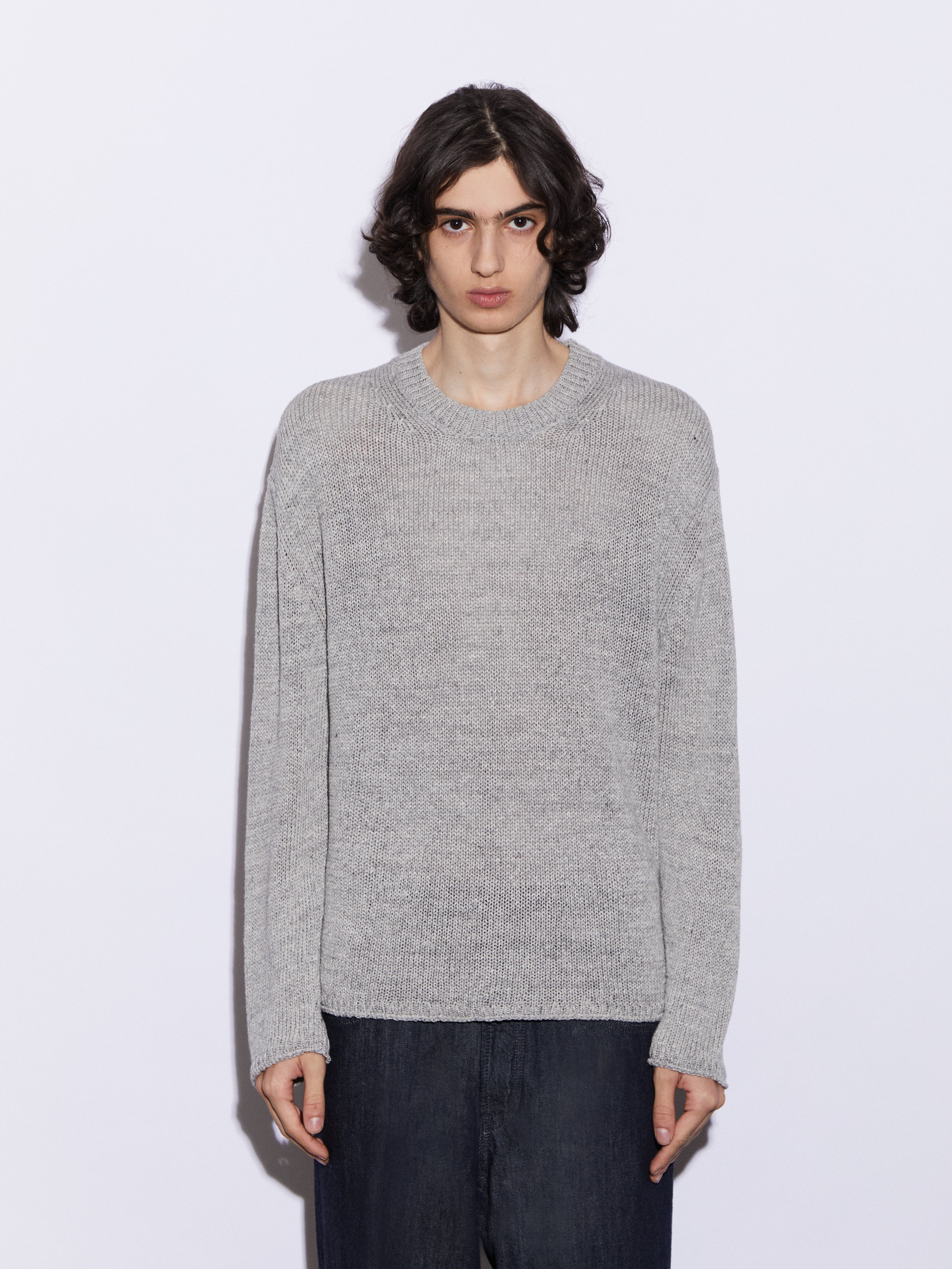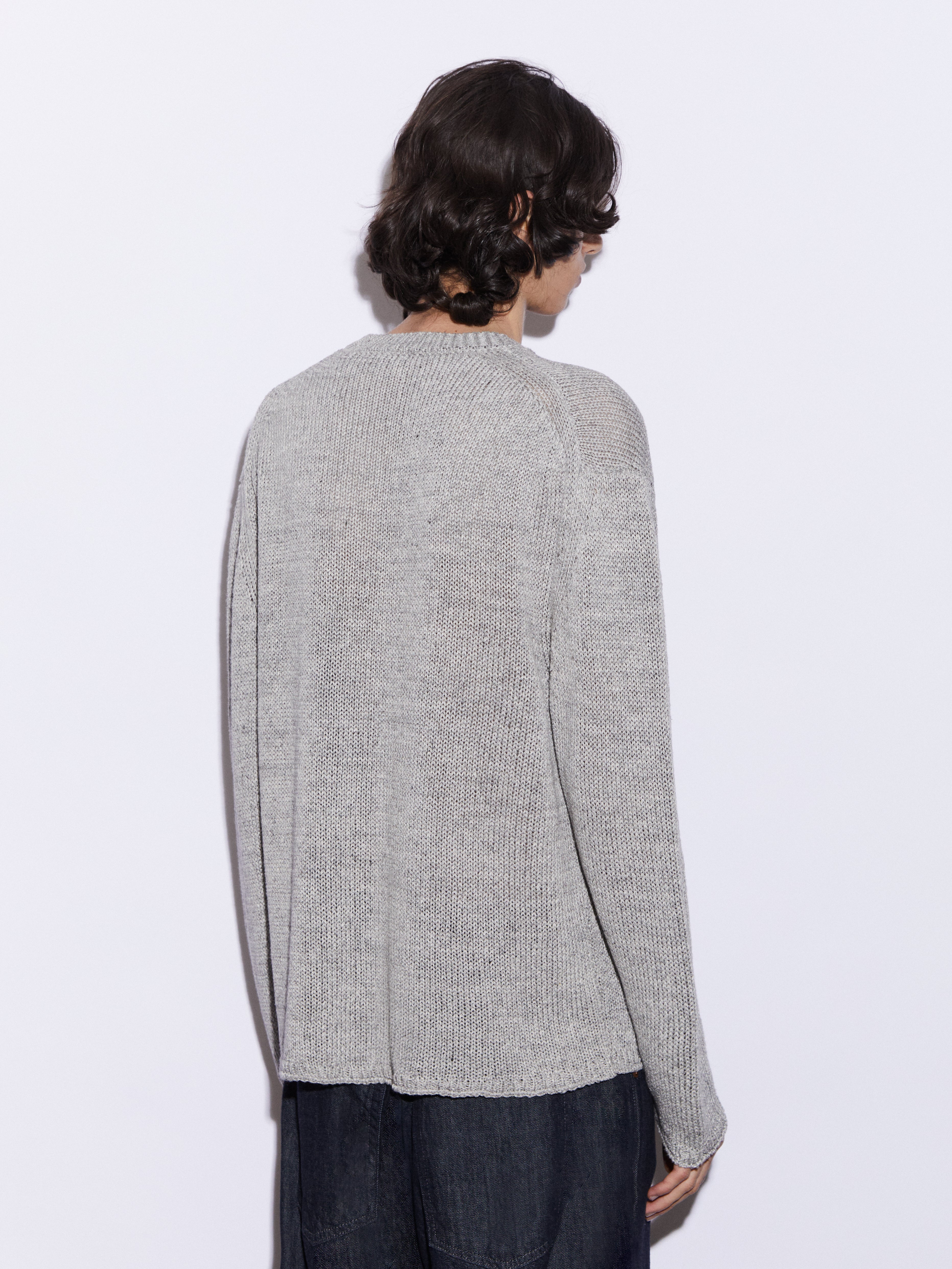 Rundhalspullover aus schlichtem Strickmaterial aus Leinen und Seide